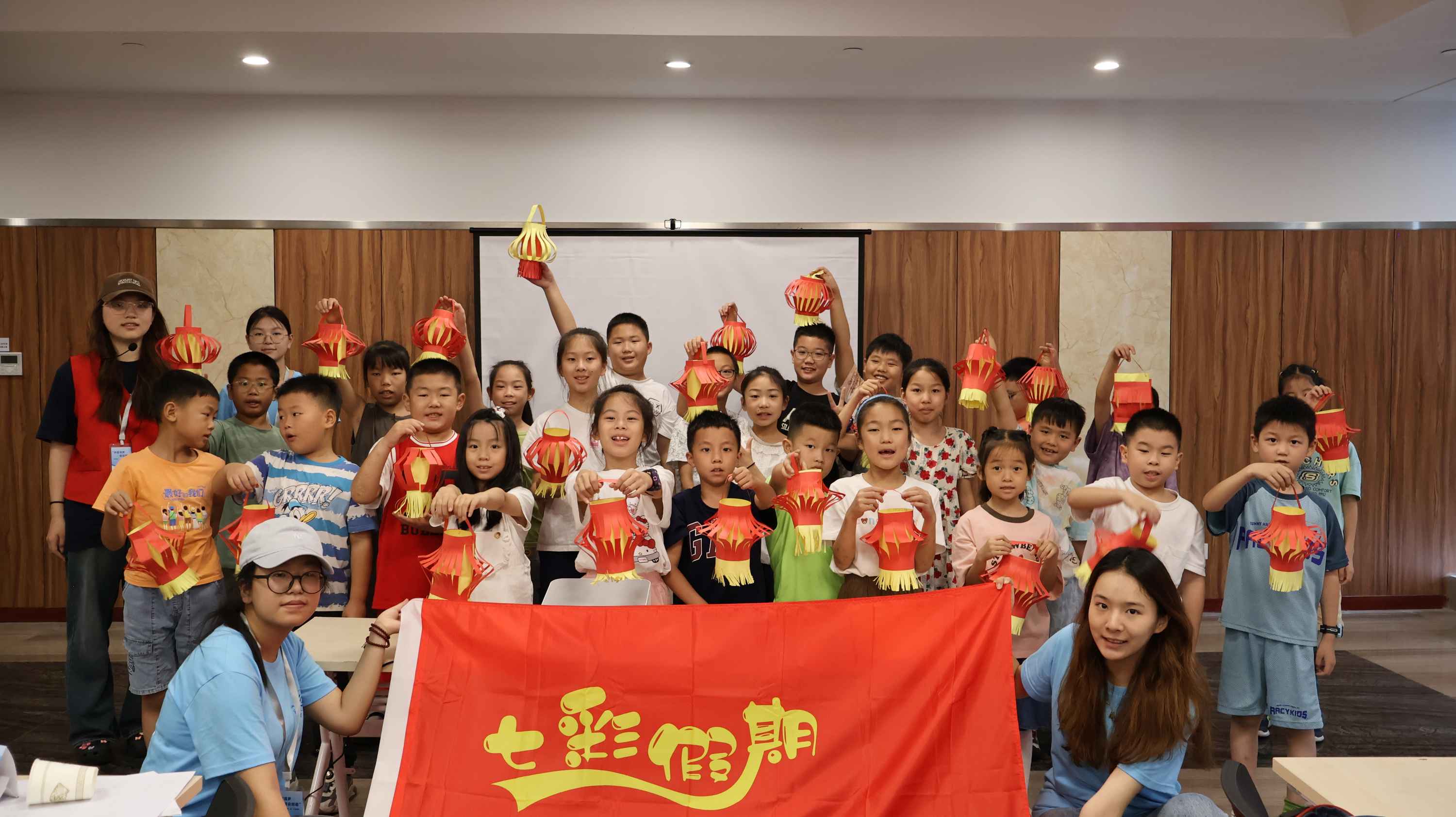 “慧啟青苗,‘工’富‘童’行”實踐隊與小朋友們在彩燈映華課的合照