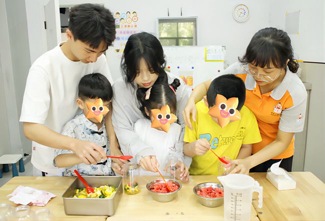 7月5日,福建農林大學數字經濟學院赴泉州市安溪縣筑夢心守實踐隊抵達安溪縣卓言兒童語訓中心,配合機構老師開展美食節活動,共同布置美食攤位并精心準備各種美食。活動當天,機構里彌漫著誘人的食物香氣,桌子上擺滿了各式各樣的美食,從精致的壽司、香脆的炸雞塊薯條到冰涼的水果茶四果湯,應有盡有。活動中,“星星的孩子”們化身為小小廚師,在實踐隊成員的指導下制作美食。他們不僅展現了出色的動手能力,還通過與其他人的交流互動,提高了社交能力和自信心,這為他們的成長和發展注入了新的動力。孩子們的臉上洋溢著快樂的笑容,他們用自己獨特的方式表達著對生活的熱愛和對美食的熱愛。