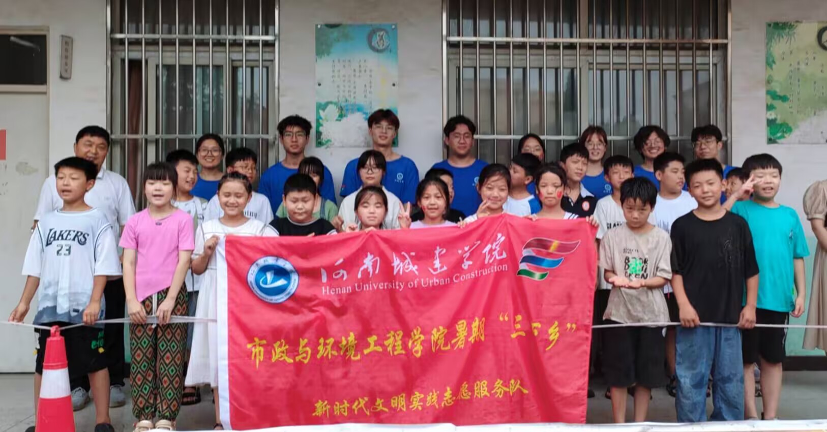 河南城建學院市政與環境工程學院新時代文明實踐志愿服務隊與馬莊小學同學合影
