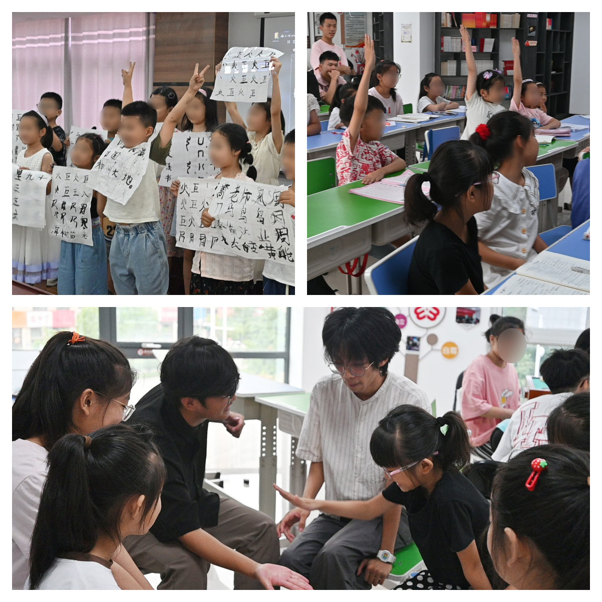 在“點對面幫扶”項目中,我們受到了賈汪區大泉街道和泉山區金山街道的大力支持,團隊的“暑托班”課程小組與當地新時代文明實踐站的工作人員攜手合作,為孩子們精心策劃了一系列寓教于樂的課程:陪伴孩子們觀看電影《我和我的祖國》并配以生動講解,與孩子們 “共上一堂思政課”;細致講解飛機與火箭的運行原理及相關物理知識,帶領孩子們在 “科技創新課堂”動手制作并放飛承載希望與夢想的“小火箭”;為孩子們講解歷史名人蘇軾的“朋友圈”,走進“傳統文化課堂”;邀請消防員開展“安全與自護教育課堂” ,向孩子們普及防溺水與消防安全等相關知識;舉辦“身心健康團輔課”,讓孩子們在溫馨的沙龍茶話會上分享生活中的煩惱與快樂;將非遺文化帶入手工課堂,與孩子們一起制作漆扇、扎染......。這些課程不僅涵蓋了思想引領、文化傳承、身心健康和科技創新等多個領域,還特別注重互動性和體驗性,讓孩子們在參與中學習,在學習中成長。
