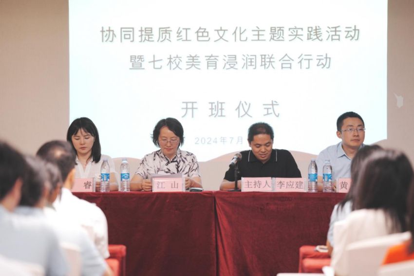 7月10日上午,協(xié)同提質(zhì)紅色文化主題實(shí)踐活動(dòng)暨七校美育浸潤(rùn)聯(lián)合行動(dòng)開(kāi)班儀式順利舉行。遵義師范學(xué)院黨委副書(shū)記江山、團(tuán)委副書(shū)記余睿、教務(wù)處副處長(zhǎng)黃川騰、華中師范大學(xué)學(xué)生會(huì)指導(dǎo)老師羅金、學(xué)生社團(tuán)指導(dǎo)中心指導(dǎo)老師陳果出席儀式,湖北師范大學(xué)、南寧師范大學(xué)、貴州師范大學(xué)、漢江師范學(xué)院、黔南民族師范學(xué)院相關(guān)負(fù)責(zé)人和師生代表參與開(kāi)班儀式。開(kāi)班儀式由遵義師范學(xué)院馬克思主義學(xué)院黨總支書(shū)記兼繼續(xù)教育學(xué)院院長(zhǎng)李應(yīng)健主持。