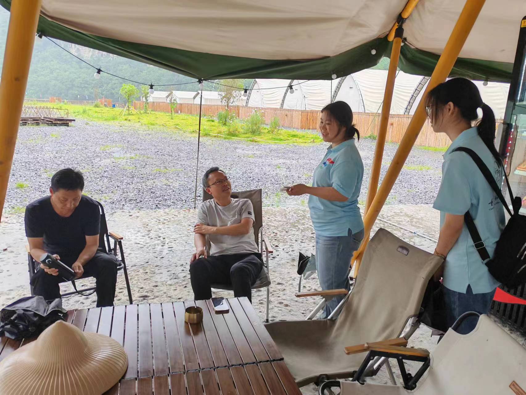 游客點贊:放松的理想圣地 隨后,實踐隊員們與游客進行了親切的閑談。盡管當日正值大雨,游客們卻紛紛表示,對基地的喜愛未曾減退。多數游客提到,他們是通過網絡了解金山湖畔露營基地的,并與交好的朋友一同前來,這已經不是他們第一次光顧這里了。