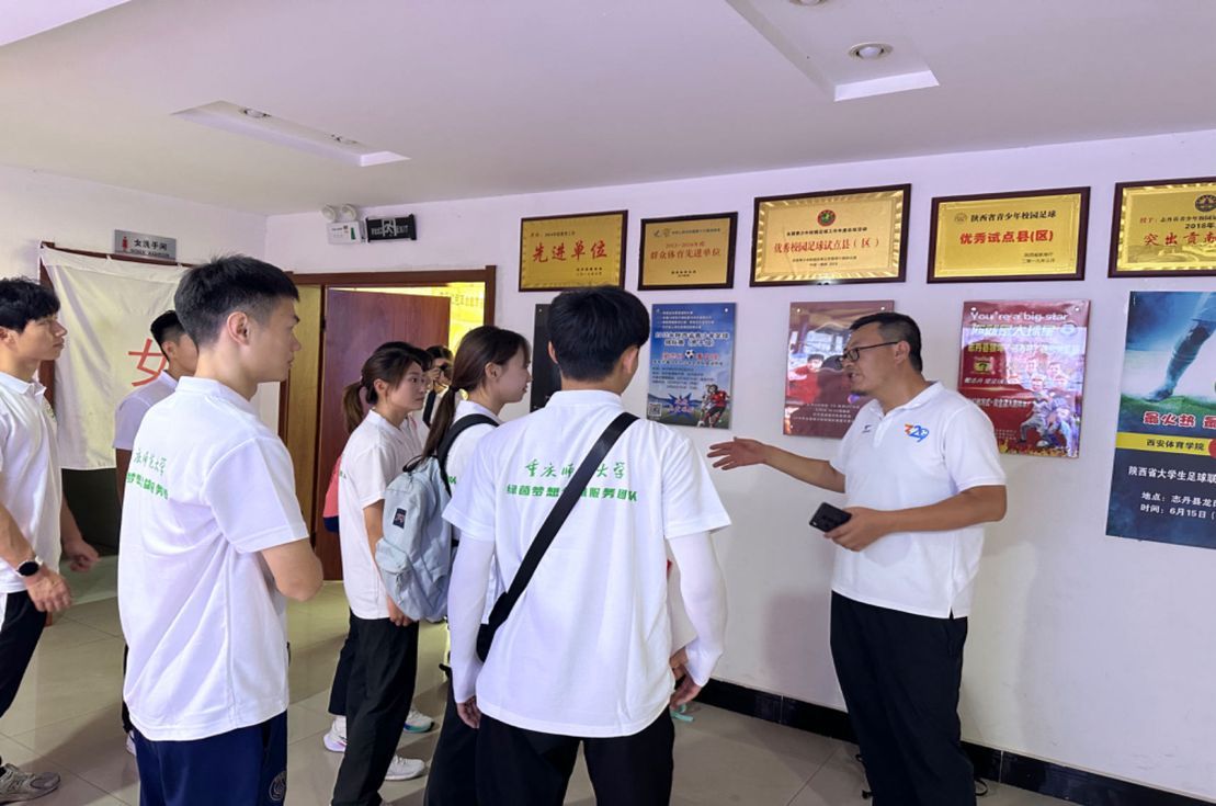 在志丹縣教育體育局的引領下,志愿者們仿佛穿越了時空的隧道,來到了足球文化的殿堂。志丹縣足球協會主席丁常保親自擔任向導,為這群懷揣夢想的年輕人揭開了志丹足球的神秘面紗。在參觀過程中,一張“意義非凡”的照片吸引了所有人的目光——那是習近平主席與彭麗媛夫人在志丹縣足協成立11周年慶典上與足球少年的溫馨合影,習主席的話語“我看好你們,愿你們成為未來的足球明星”如同春風化雨,滋潤了每位志愿者的心田,激發了他們為鄉村足球夢添磚加瓦的決心。