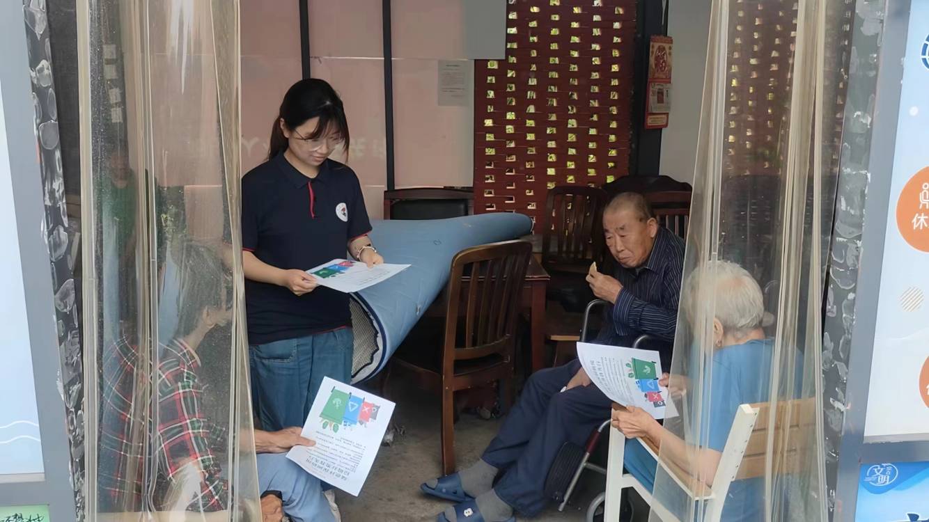 圖為實(shí)踐隊(duì)員進(jìn)社區(qū)進(jìn)行宣傳普及。通訊員 吳欣怡攝