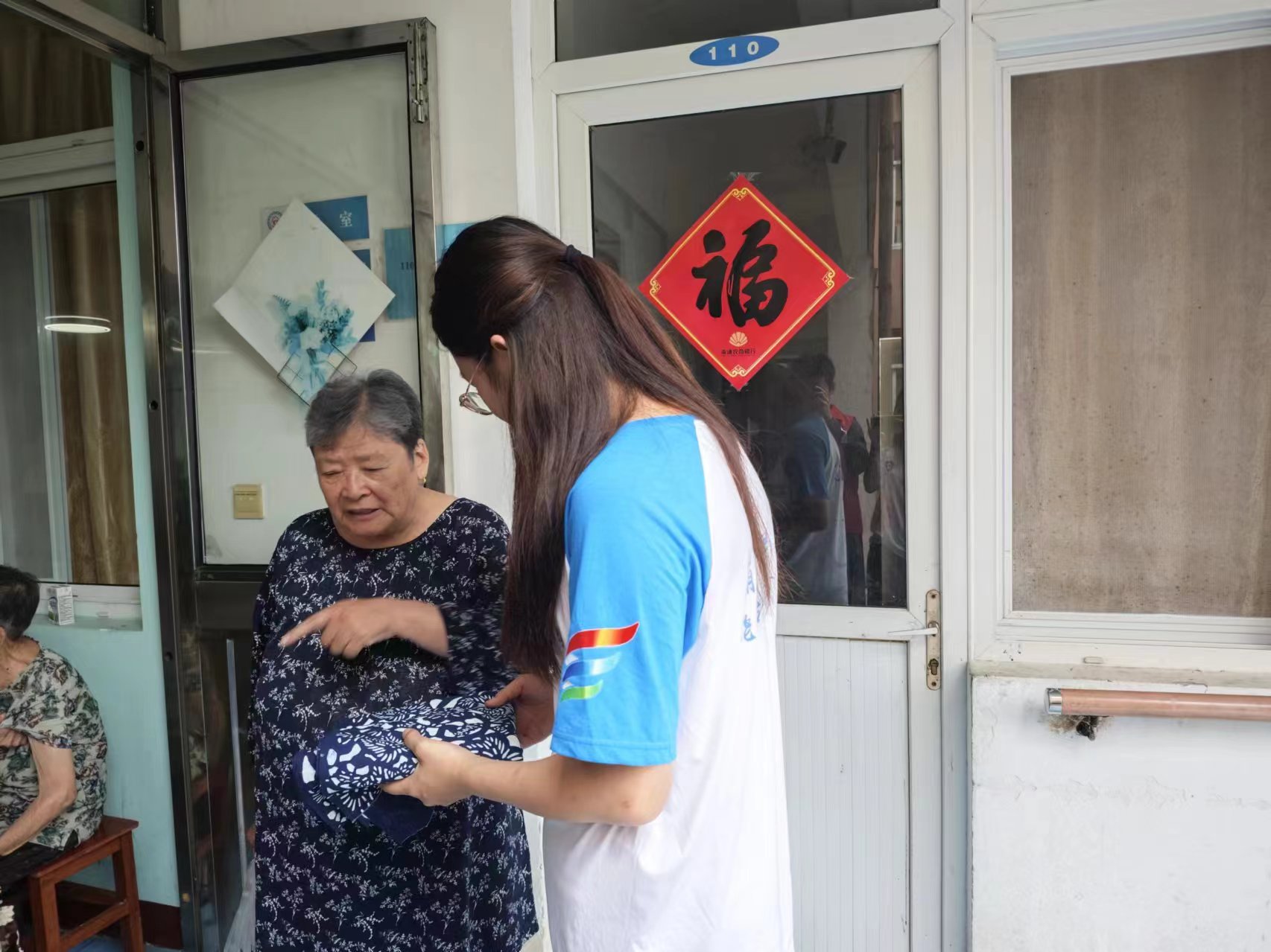 活動中,志愿團成員先向老人們分發愛心物資并聊天解悶,使得他們獲得物質溫暖的同時,感受到來自志愿團隊的精神陪伴力量。