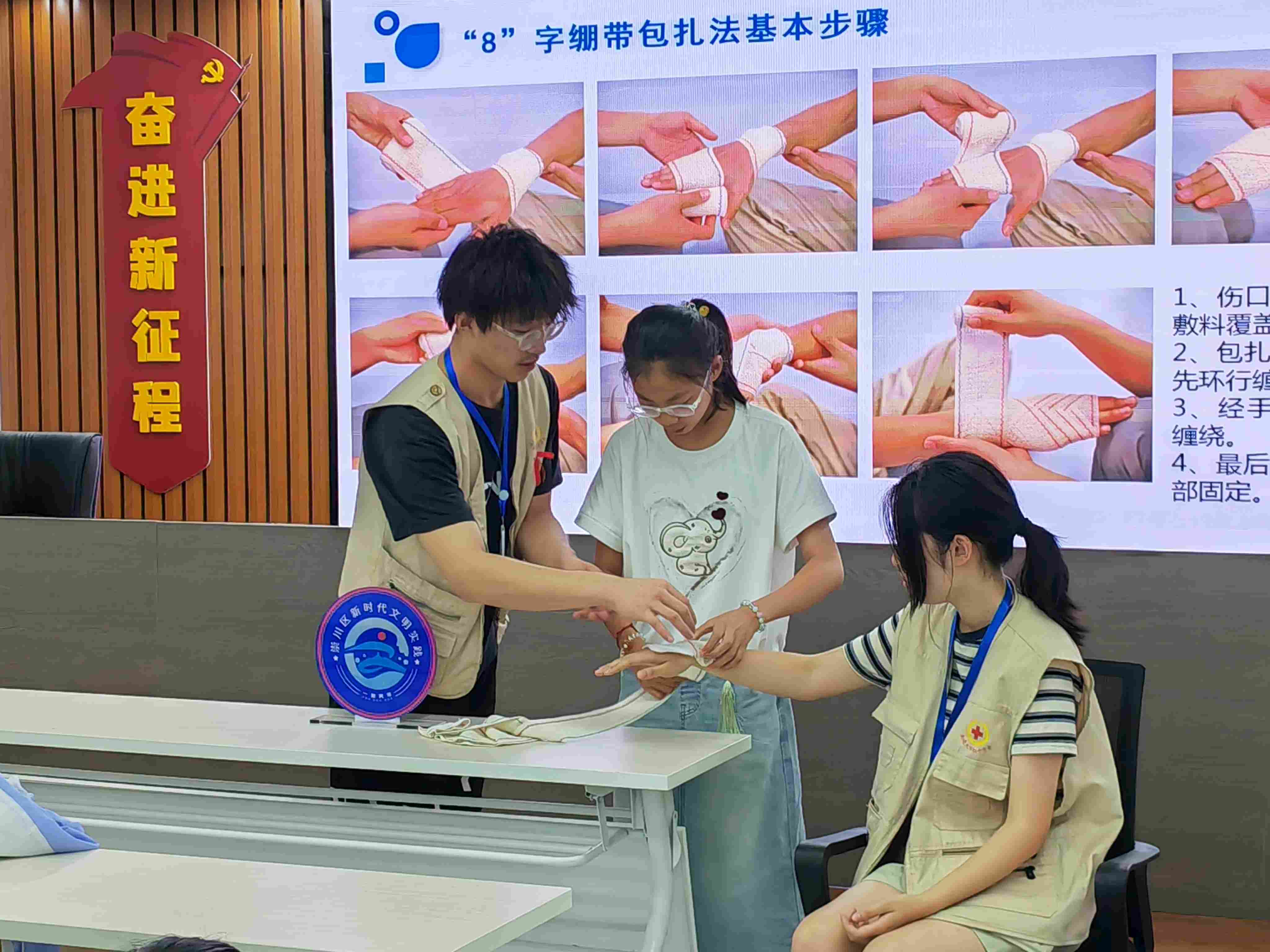 志愿者們不僅停留在理論講解的層面,更通過模擬演示,將抽象的急救知識轉化為直觀可感的實踐場景。他們耐心引導孩子們參與其中,親手操作,感受每一次按壓力度,每一次包扎緊密度。在志愿者的悉心指導下,孩子們學會如何在緊急關頭迅速而準確地采取行動,更深刻體會到掌握急救知識對于保護生命、挽救生命的重大意義。未來,他們或許會成為傳播急救知識的使者,將這份愛與責任傳遞給更多的人。