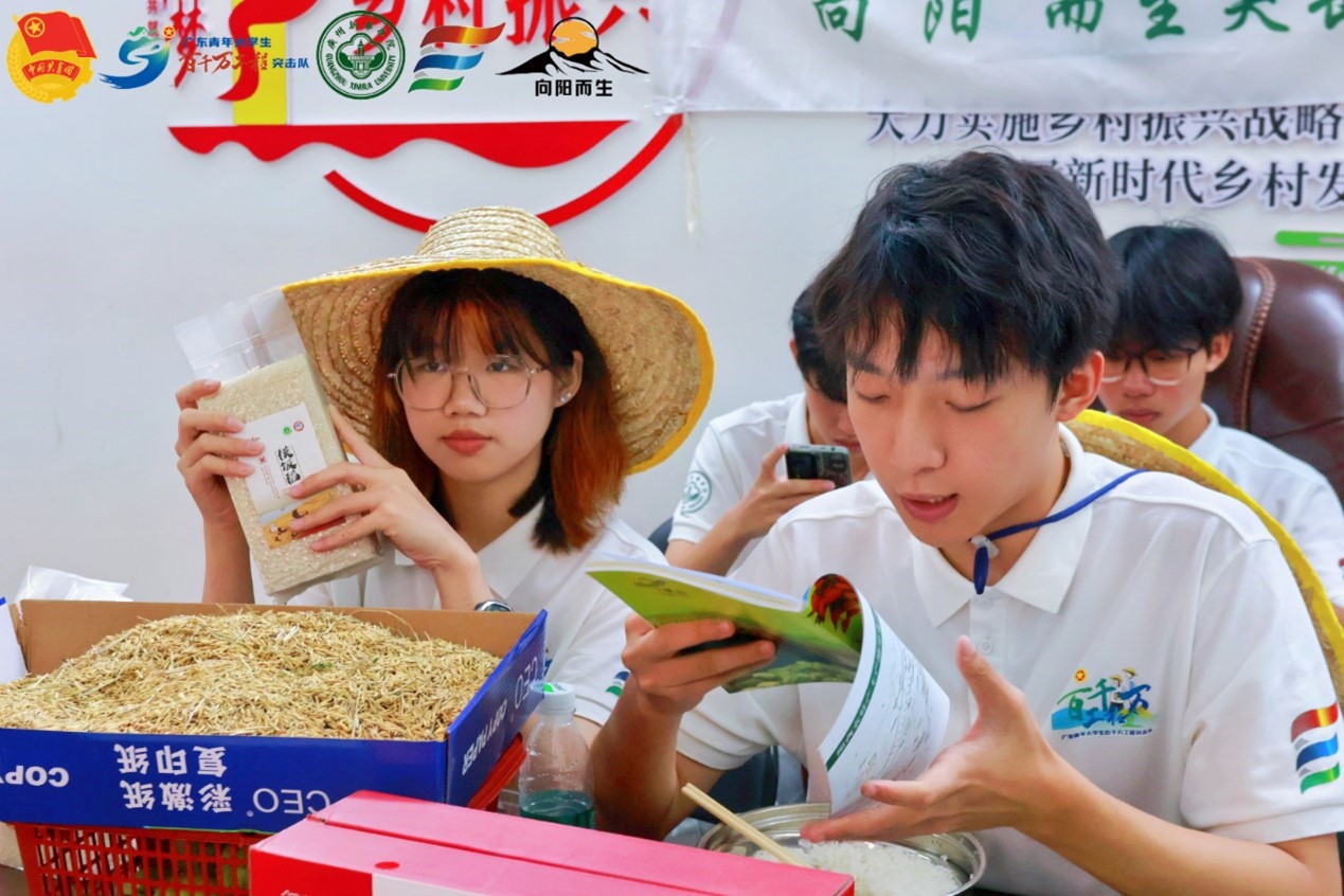 圖為實踐隊隊員直播宣傳絲苗米 實踐隊隊員張金普攝