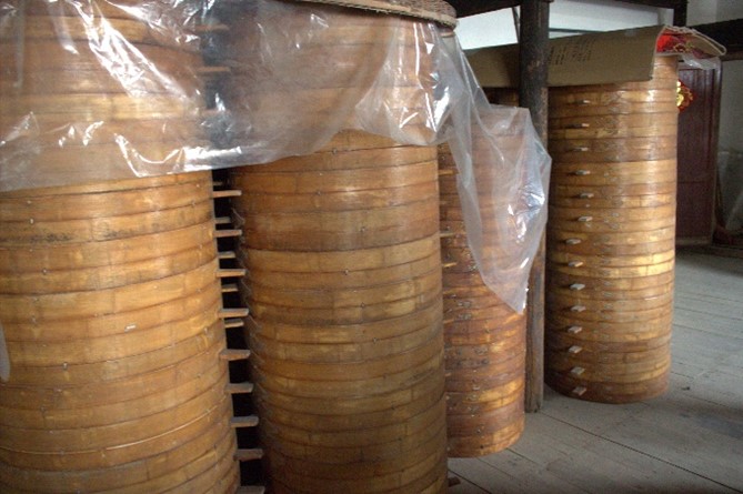 為更好了解當(dāng)?shù)匕l(fā)糕的發(fā)展,團(tuán)隊(duì)采訪了當(dāng)?shù)剌^有名氣的一家發(fā)糕坊——志芳發(fā)糕。通過(guò)采訪,成員們了解了發(fā)糕的制作過(guò)程與工藝,其中主要原料為珍珠米,輔料包括豬油、白糖、自制酒釀等,用于增加發(fā)糕的口感和風(fēng)味。第一步需要浸泡與磨粉:糯米需提前浸泡7~10天,梗米浸泡一天左右,以確保米粒充分吸水膨脹。浸泡后的米粒需漂清,然后磨成細(xì)粉狀,以便后續(xù)制作。第二步為調(diào)制與發(fā)酵:將磨好的米粉按比例加入白糖、豬油和酒釀等輔料,攪拌均勻至糊狀。將調(diào)好的米粉糊放入蒸籠中,底部鋪上荷葉或箬葉以防粘。通過(guò)文火加熱促進(jìn)發(fā)糕的自然發(fā)酵,期間需定期調(diào)換蒸籠順序以保證均勻受熱。最后就是蒸制與裝飾:待發(fā)糕發(fā)酵至滿籠后,加大火力蒸制至熟透。