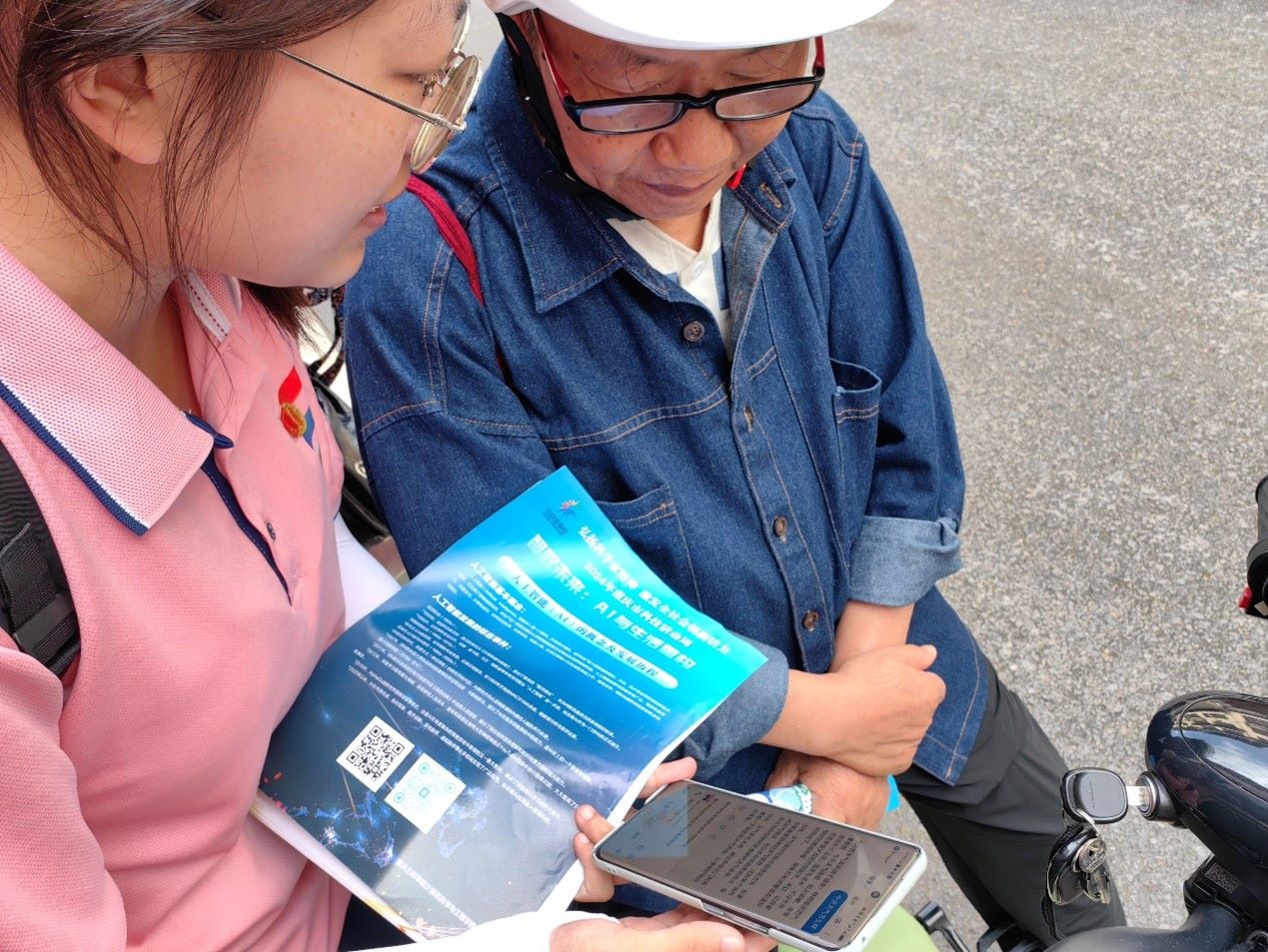 實踐團成員沿街走訪分發(fā)傳單、舉辦講座,通過生動有趣的講解和互動體驗,向居民們展示了人工智能在農(nóng)業(yè)、家居、教育等多個領(lǐng)域的應(yīng)用。團隊成員分工明確,知識普及組的同學(xué)們向居民們介紹人工智能的基礎(chǔ)知識和應(yīng)用潛力;技術(shù)演示組負(fù)責(zé)實際操作展示比如幫助居民們下載AI應(yīng)用軟件,帶著他們使用軟件,使居民們對AI軟件有了更清晰具體的認(rèn)知,以及如何使用智能設(shè)備監(jiān)測作物生長情況、如何利用在線教育平臺獲取知識資源等。