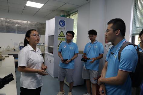 圖為工作人員為實(shí)踐團(tuán)成員介紹水處理流程