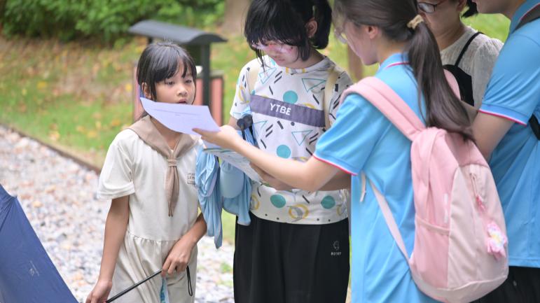 圖為團隊成員向青少年講解生態保護知識