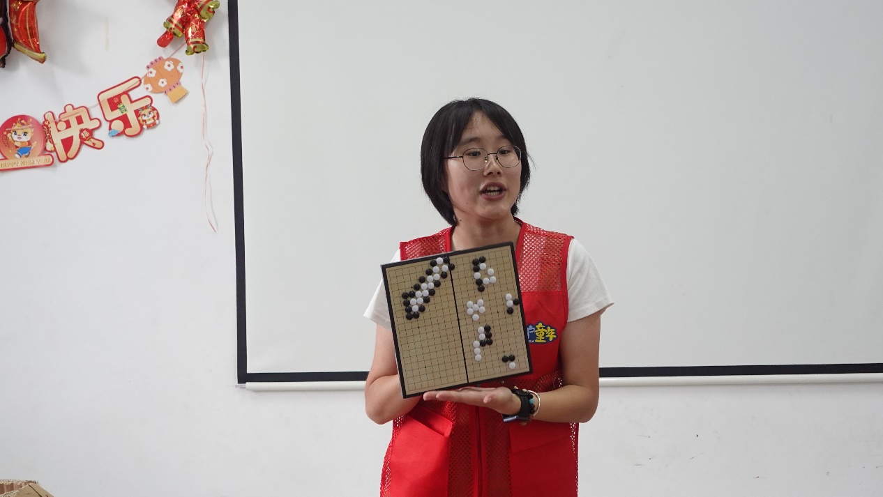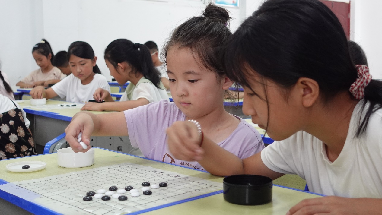 支教隊(duì)員在演示圍棋基礎(chǔ),孩子們聚精會(huì)神地學(xué)習(xí)棋藝的奧秘。