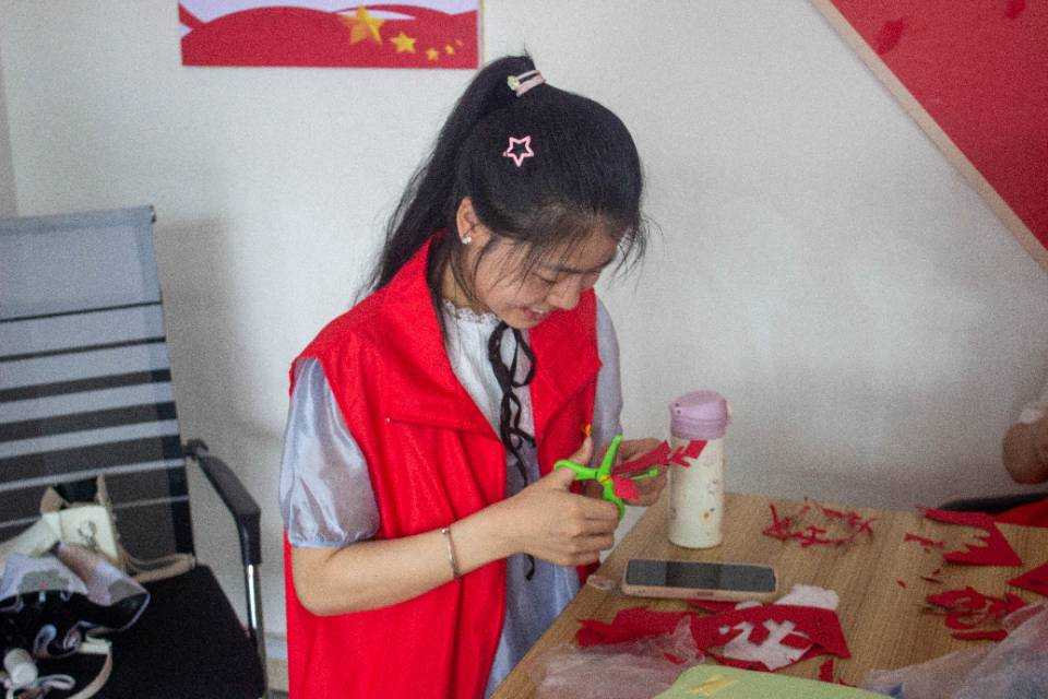 另一邊隨著剪刀的舞動,一張張平凡的彩紙在孩子們靈巧的雙手下化身為生動的畫面:活潑的小兔、綻放的花朵、翱翔的飛船……這些作品不僅展現了孩子們豐富的想象力和創造力,更傳遞出他們對美好生活的向往和追求。