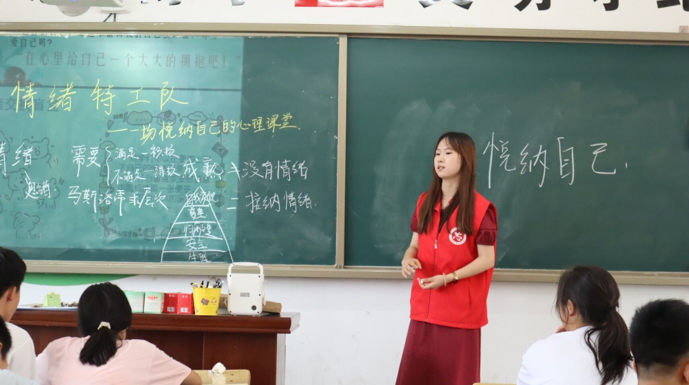 悅納,意味著接受并滿足自己的內在需求與價值。對自己的方方面面持積極、肯定、包容的態度。通過這節情緒心理課堂,學生們學會正視自身情緒,理解情緒的作用機制,從而悅納自己,包容自己,守護心理健康,正確處理情緒關系。志愿者也在教學的過程中,感知學生們隱藏其下的心理問題,從中給予引導與鼓勵,在與他人分享的過程中加深了理解,來了一場心與心的交涉。