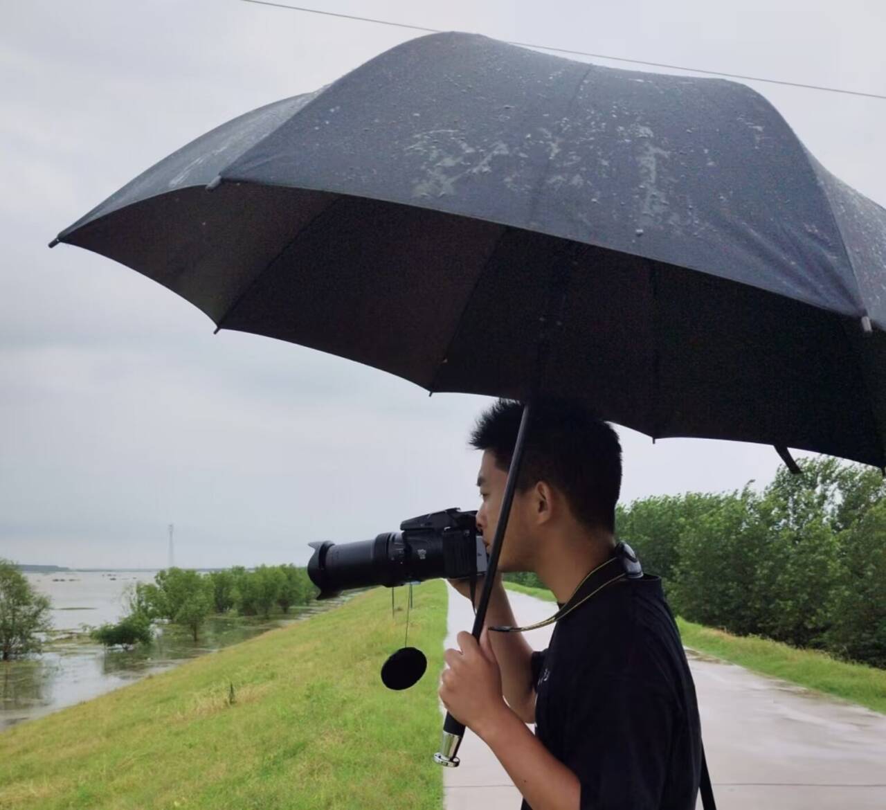 在對當地水鳥進行觀測的過程中,實踐隊員也遇到了許多困難。夏季連綿的降水讓大家渾身濕透,三十度以上的高溫讓隊員們汗流浹背,濕地保護區的特殊地理因素也給實踐調查帶來了泥濘濕瘴的調查環境……這些都是在進行水鳥調查時所要克服的不利因素。此外,由于湖北省今年春夏季降雨量較大,調查隊員們經歷了暴雨侵襲,泥地陷車,保護區淹沒等困難。盡管如此,在大家的頑強拼搏下,預調查還是取得了圓滿的結果。
