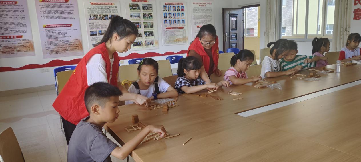 圖為科普實驗課上,志愿者教孩子們搭建廊橋。中國青年網(wǎng)通訊員 徐明珠 供圖