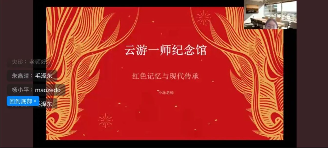 一師,作為百年學府,其獨特的文化魅力在于其深厚的紅色基因、嚴謹的治學態度以及不懈的教育追求。首先,實踐團聯系“毛澤東與第一師范紀念館”專業講解人士,引導學生們按照“正門→序廳→第一展廳→第二至第五展廳”的參展路線進行云游覽。通過高清直播等現代科技手段,四地青少年仿佛穿越時空,親歷一師范紀念館的每一個角落,聆聽毛澤東等革命先輩的求學故事,感受那份“學高為師,身正為范”的崇高精神。