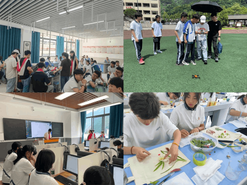 緊隨其后,電子科技大學與香港大學的學生們?yōu)橛承阒袑W的同學們帶來了一系列精彩紛呈的互動體驗:無人機展示、運動科技數(shù)據(jù)分析、科技教育交流、英語口語坊、生命葉拓帆布包等。無人機飛向湛藍天空,拍下美麗的映秀中學和學生們可愛的笑臉,大家向無人機揮舞著雙手拍照,留下最美好的回憶。運動分析APP精準記錄學生跳遠的運動圖像和具體數(shù)據(jù)并給出調(diào)整建議。葉拓環(huán)節(jié)同學們把大自然的樹葉與花朵通過拓印的方式留在帆布袋上,感悟人與自然和諧共生理念。