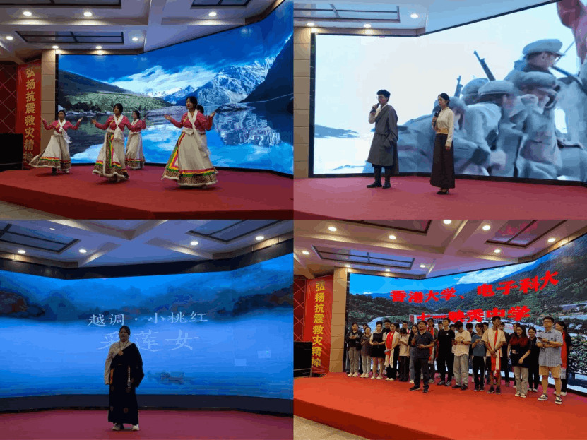 文藝匯演將活動推向高潮,七一映秀中學的師生們表演了《阿壩頌》詩朗誦、《吉祥的日子》藏羌歌舞、《采蓮女》國風歌曲等,最后,由香港大學、電子科技大學與映秀中學三校同學們共同合唱了《我和我的祖國》,歌聲悠揚,飽含深情,現(xiàn)場氣氛熱烈,場面十分感動震撼,共同謳歌新時代,充分展現(xiàn)了當代青年學子的愛國情懷與團結(jié)精神,為促進三地學生交流與文化融合搭建了良好的橋梁。