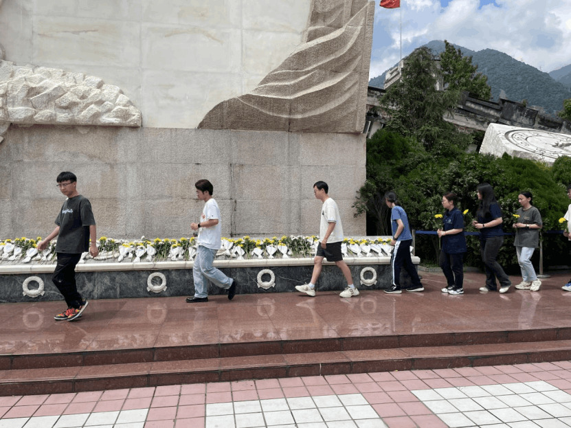 同學們向逝去的英烈敬獻鮮花