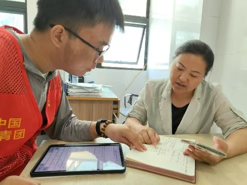 對洽社村長進行問卷調研(安徽中醫藥大學李璐攝)