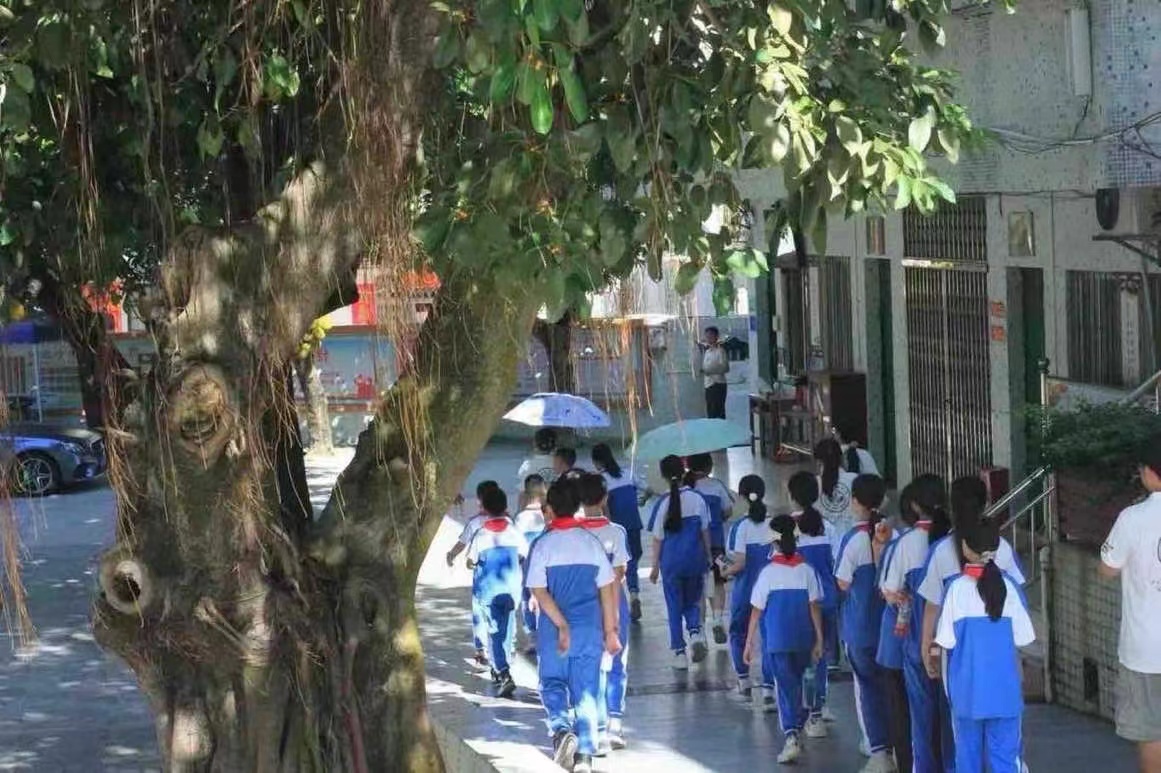 (圖為實踐隊帶領沙扒鎮中心小學的同學們前往沙扒鎮敬老院 實踐隊隊員 譚宗豪攝)