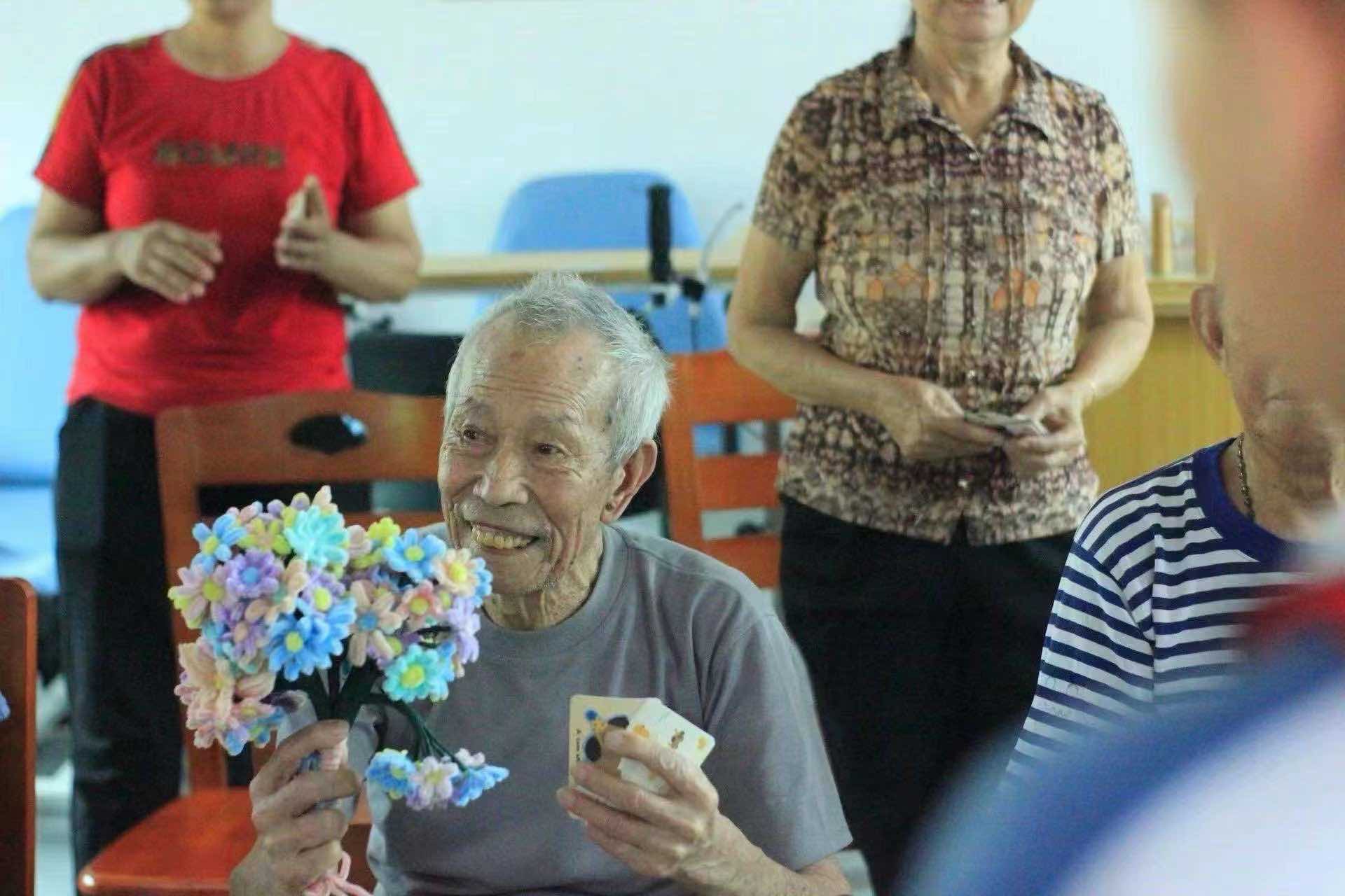 此外,孩子們還親手制作了扭扭棒花束和手寫祝福賀卡送給老人們。每一束花束都凝聚著他們的創意與心意,每一張賀卡都承載著他們真摯的祝福與美好的愿望。老人們接過這些珍貴的禮物,眼中閃爍著淚光,感激之情溢于言表。