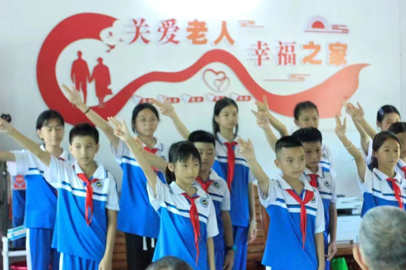 (圖為沙扒鎮中心小學的同學們為老人表演節目 實踐隊隊員 譚宗豪 攝)