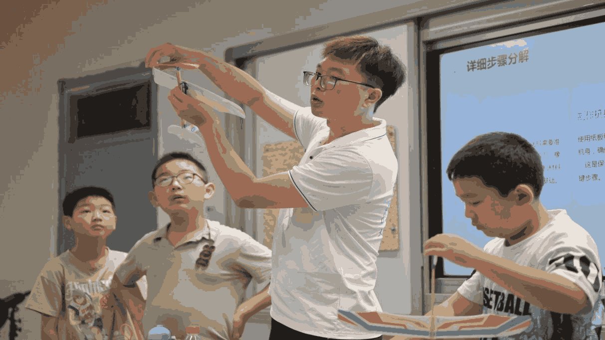圖為支教隊員史松宸正在講解飛機動力原理。王梓仰 攝