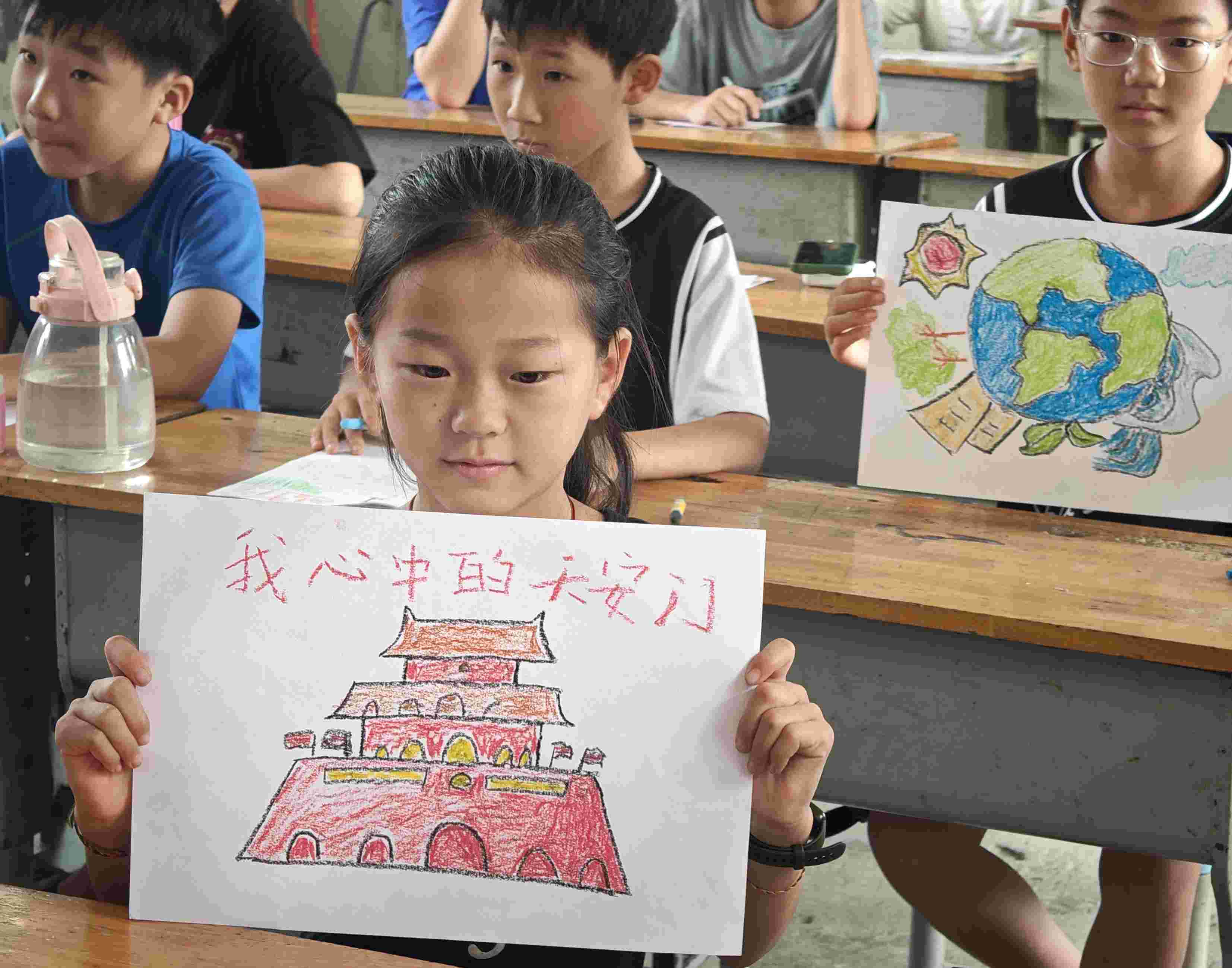 愛國主題紅色教育毋庸置疑是每個中華兒女應(yīng)當自覺接受的教育。無論是在校園中還是在校園外都應(yīng)將愛國情懷內(nèi)化于心,外化于行。而且青少年應(yīng)當扣好人生第一粒扣子,故團隊選擇了唱響紅歌,主題繪畫的活動形式并展開。愛國教育進校園,不僅僅是孩子們學習知識的重要途徑,也是他們健康成長、全面發(fā)展的重要保障。支教團隊成員攜手努力,共同傳承中華民族的愛國精神。