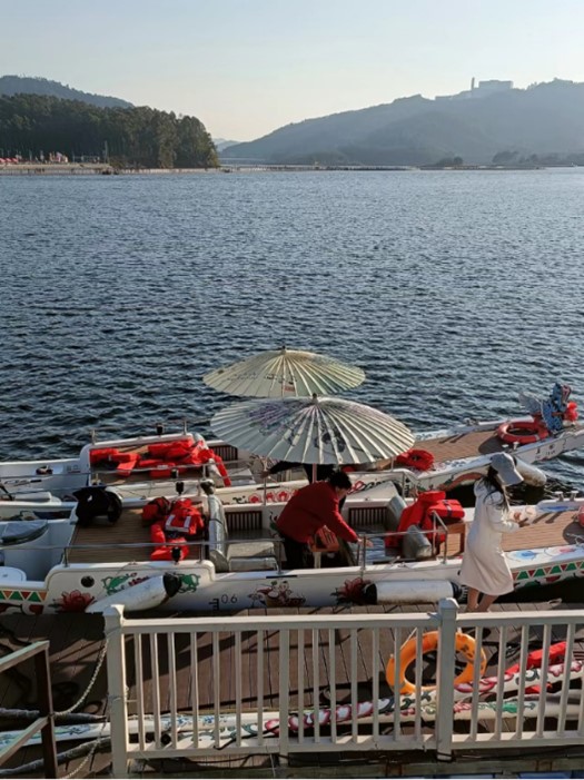 隨后,隊員來到古田溪的水源自翠屏湖——古田縣著名的風景區,近幾年,隨著古田縣經濟的快速發展,貧困縣摘帽,翠屏湖畔建成了棧道、新碼頭、亭子等一系列設施。景區建設完成后,岸邊的一些塑料袋、泡沫箱、以及人們丟棄的垃圾隨之消失,整潔衛生的景區環境是人們共同保護這片青山綠水的成果。干凈的湖面、清新的空氣、環抱湖水的群山、湖心的千百座島嶼,成為翠屏湖靚麗的名片,每到節假日總是游人如織。站在湖心的棧道上,有時能看到密集的魚群迅速游過,藍色的天空倒映在湖水,有時還能看到白鷺或者鳥群飛過。翠屏湖良好的生態環境是“綠水青山就是金山銀山”有力的映證。