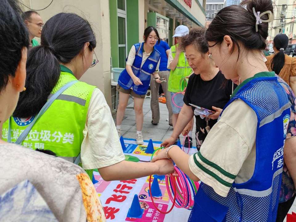 活動(dòng)現(xiàn)場(chǎng),實(shí)踐團(tuán)成員主要負(fù)責(zé)組織“套圈抽問題,答題贏好禮”的趣味互動(dòng)游戲,這一環(huán)節(jié)將垃圾分類知識(shí)融入游戲,以問答形式獲知社區(qū)居民對(duì)于垃圾分類的了解程度,收集相關(guān)信息供后續(xù)調(diào)研使用。同時(shí),為增強(qiáng)宣傳效果、進(jìn)一步擴(kuò)大宣傳覆蓋面,團(tuán)隊(duì)成員與社區(qū)工作人員合作,深入居民樓進(jìn)行垃圾分類的宣傳工作。成員們逐戶發(fā)放宣傳資料,分享垃圾分類的實(shí)際操作經(jīng)驗(yàn),詳細(xì)解答居民關(guān)于垃圾分類的疑問,進(jìn)一步普及垃圾分類的重要性和必要性,有效加深社區(qū)居民對(duì)垃圾分類的認(rèn)識(shí)。