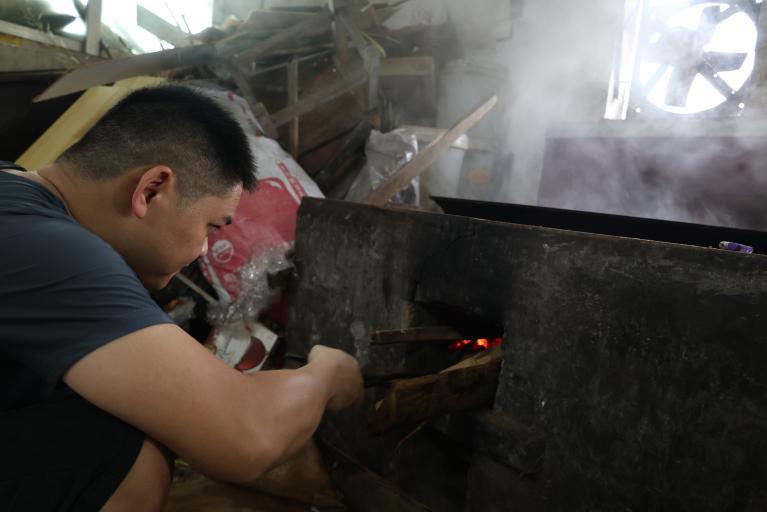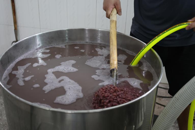 (圖3-4 楊師傅進行豆沙熬制)