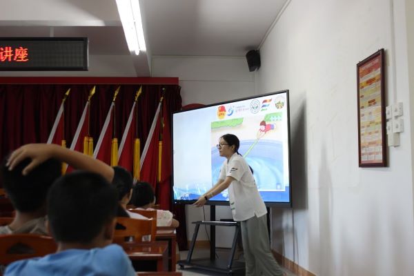 實(shí)踐隊(duì)隊(duì)員簡曉琳進(jìn)行授課 胡秋萍攝