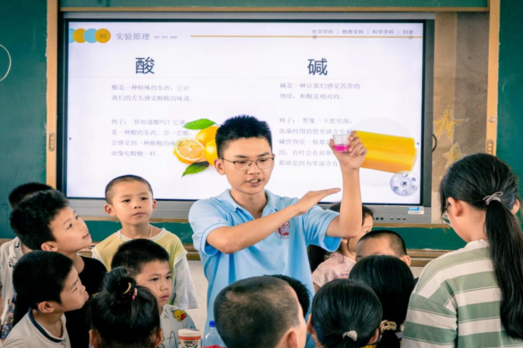圖為實(shí)踐隊(duì)員為大洋鄉(xiāng)學(xué)子授課。 高翊 攝