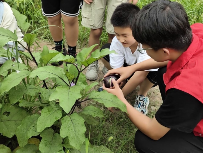 通過這次“三下鄉”務農體驗,支教團的成員和孩子們不僅在田間地頭收獲了勞動的快樂與成就感,更在心靈上得到了深刻的觸動。務農勞動過后,還會給每個人“辛苦獎勵”—田地里的“綠色”茄子。他們意識到,鄉村振興不僅需要科技與知識的注入,更需要對土地的深情與尊重。孩子們紛紛表示,將來要成為鄉村振興的參與者和推動者,用知識和汗水澆灌希望的田野,讓青春與土地的對話,綻放出鄉村振興的最耀眼光芒。