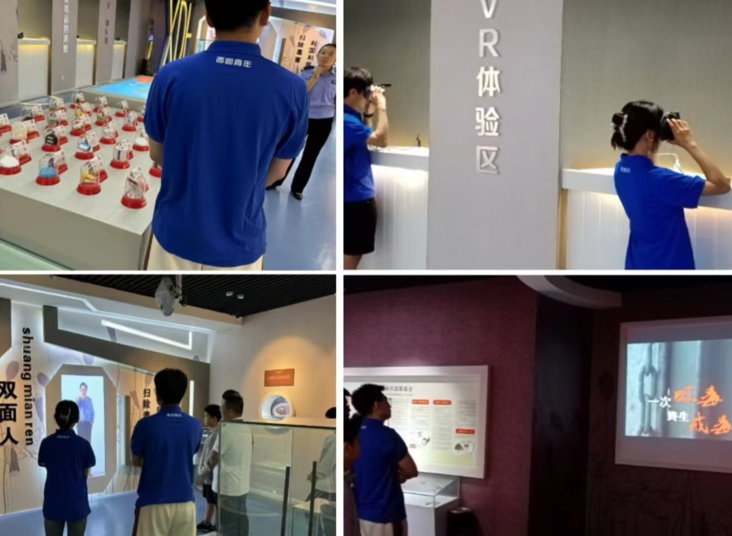 活動過程中,我們認真聆聽、仔細觀察、積極提問,展現出了強烈的求知欲和和對禁毒知識的濃厚興趣,在講解員帶領下,我們依次參觀了各個展廳,展廳采用聲、光、電等現代科技手段,充分運用微電影、專題片、多媒體投影等大家喜聞樂見的現代傳媒形式,結合毒品實物模擬展出、家庭模擬場景、游戲互動等方式,集中展示了我國禁毒法律法規方針政策、黨和國家領導人對禁毒工作的批示、常見毒品和毒品危害知識、禁毒歷史知識、拒毒防毒知識。