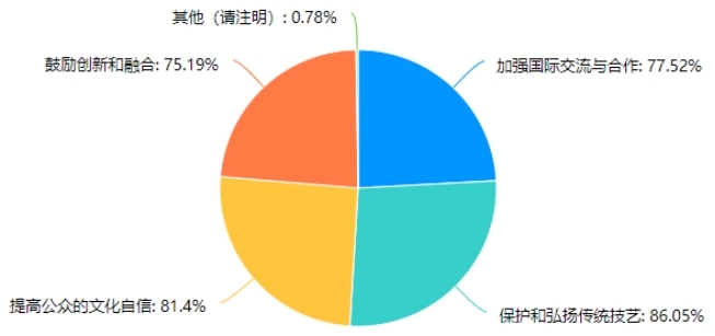 絕大多數受訪者認為應該增加政府投入、鼓勵民間參與、提高公眾意識等方式來更好地保護和傳承非物質文化遺產。