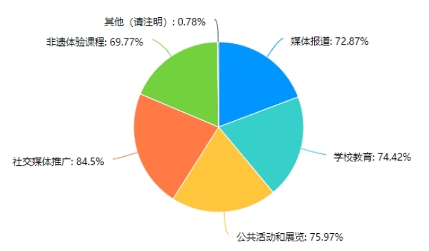 4. 宣傳推廣和保護傳承的看法受訪者普遍認為媒體報道、公共活動和展覽、社交媒體推廣是最有效的宣傳和推廣方式。