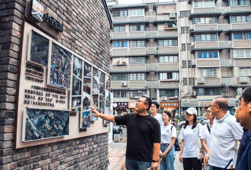 期間,為進(jìn)一步了解南京城的前世今生,探尋城市更新模式路徑,實(shí)踐團(tuán)成員首先前往南京市規(guī)劃建設(shè)展覽館進(jìn)行參觀學(xué)習(xí),通過(guò)館內(nèi)圖文、沙盤(pán)模型等回望南京從古代都城的繁榮到現(xiàn)代化都市的崛起歷程,學(xué)習(xí)先進(jìn)的城市規(guī)劃理念、創(chuàng)新的科技應(yīng)用。其后,實(shí)踐團(tuán)成員又前往老門(mén)東和小西湖進(jìn)行實(shí)地調(diào)研學(xué)習(xí)。團(tuán)隊(duì)成員了解到老門(mén)東的更新改造注重傳統(tǒng)街巷肌理尺度再生,而小西湖的更新則在保留原有建筑格局和街巷肌理的基礎(chǔ)上將低矮的棚戶(hù)區(qū)舊貌換新顏,二者皆對(duì)推動(dòng)城市空間結(jié)構(gòu)優(yōu)化提供了寶貴借鑒。