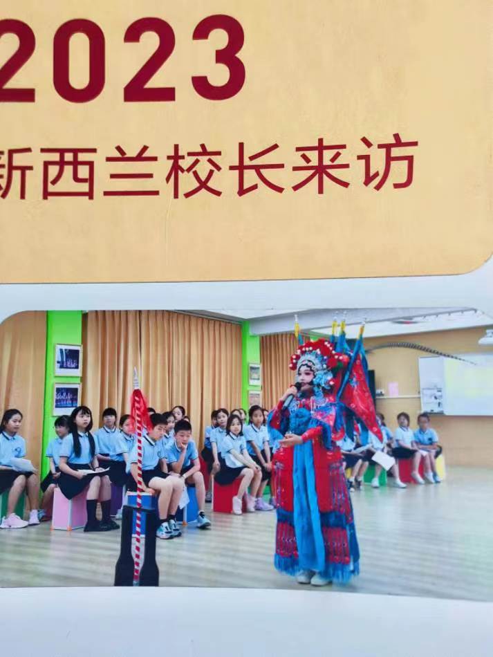 訪談結束后,韓老師還為王同學提供了更多的關于潘天壽小學引進戲曲文化的教育示范,有“美麗中國夢·翰墨潘小情”潘小迎新年有氧狂歡節中的京胡表演,還有新西蘭帕克維爾小學校長馬克·格里芬來訪時的京劇展示,從多方面的戲曲視角充實了潘小的校園文化。