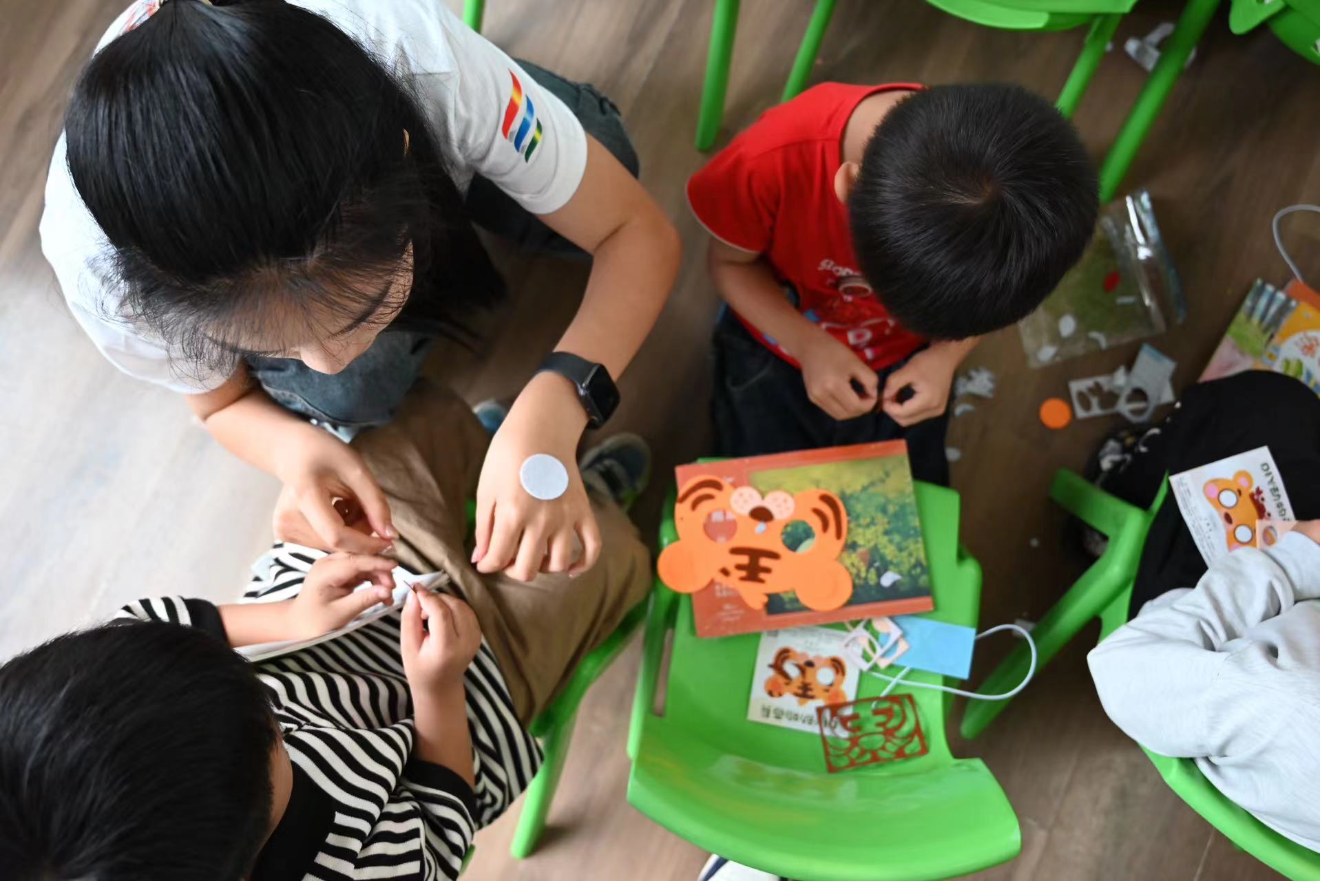圖為本志愿服務隊成員與小朋友共同完成手工作品。通訊員 楊智恒 供圖