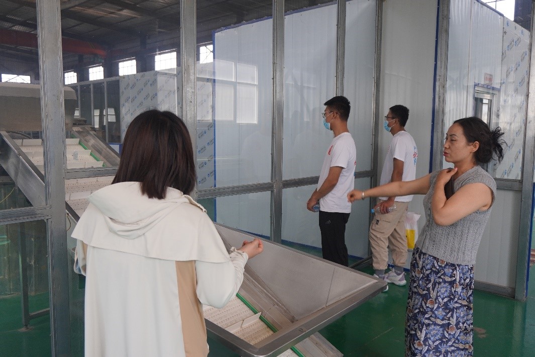 隨后,隊員們又來到隴源豐農業科技發展有限公司實踐學習。公司為靖遠縣引進了枸杞、大棗烘干流水線,枸杞、大棗、大米和冷鮮羊肉的包裝流水線等加工設備,多舉措、多方式和多維度地帶動當地老百姓實現脫貧增收,為脫貧攻堅和鄉村振興做出了巨大貢獻。該公司負責人還詳細介紹了各種包裝材料的選擇標準,強調了環保、保鮮和美觀的重要性,展示了如何根據不同農產品的特點和市場需求,設計出個性化的包裝方案,以提升產品的附加值和市場競爭力。