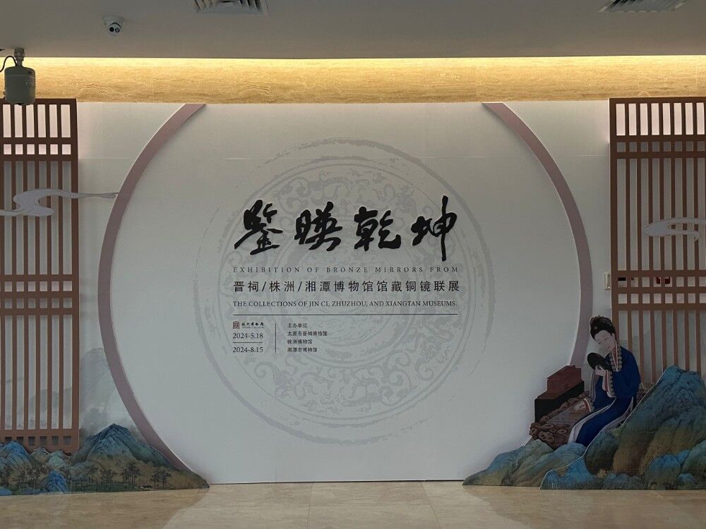 暑期正值太原市晉祠博物館、株洲博物館和湘潭市博物館開展“鑒映乾坤——晉祠、株洲、湘潭博物館館藏銅鏡聯展”期間,本次展覽精選三館藏品一百五十余件,展品時代序列完整、鑄制精良、形態美觀、紋飾華麗、銘文豐富,集觀賞、珍藏、科學研究于一體。展覽依次從春秋戰國時期、漢至南北朝時期、隋唐時期、宋遼金時期、元明清時期逐一展開,向我們展示了各個時期不同的銅鏡。