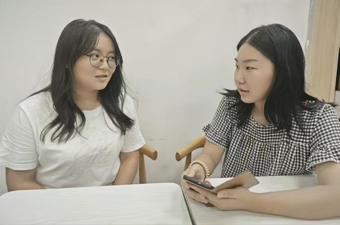 配圖二(右邊為采訪者,左邊為被采訪者+孔靜文通訊員攝):