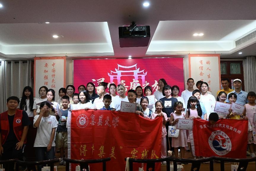 集美大學(xué)“潯夢(mèng)集美”實(shí)踐隊(duì)——嘉庚書房見證成長,結(jié)營儀式圓滿落幕 7月16日,陽光正好,嘉庚書房內(nèi)洋溢著歡聲笑語,“潯夢(mèng)集美”實(shí)踐隊(duì)邀請(qǐng)小朋友們的家長、集美街道新時(shí)代文明實(shí)踐所的老師和實(shí)踐隊(duì)指導(dǎo)老師齊聚于此成功舉辦了為期七天的社區(qū)項(xiàng)目式美育夏令營結(jié)營儀式。