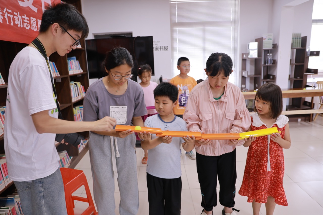 圖注 志愿者幫助小朋友們進行“珠行千里”游戲 王澤曦 攝
