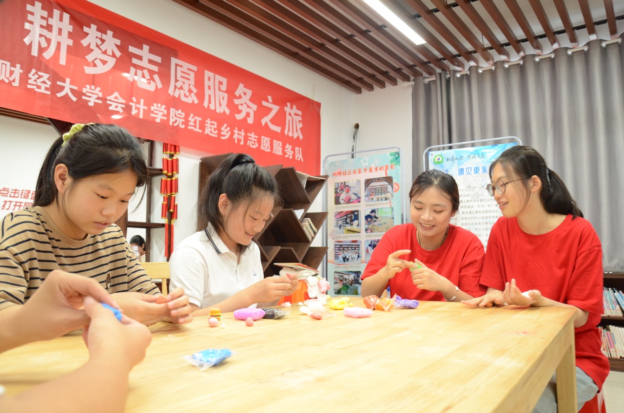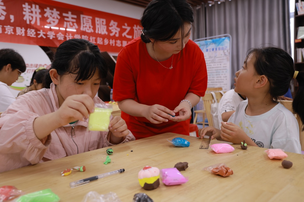 圖注 志愿者在幫助孩子們捏制粘土 尤冉自潔攝