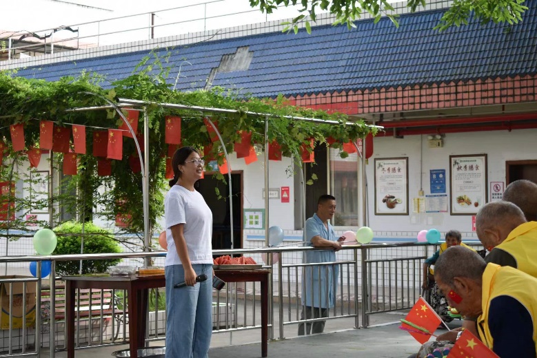7月31日,正值八一建軍節前夕。團隊成員們為老人們精心策劃了一場充滿敬意與歡樂的文化活動;顒邮覂龋娖祜h揚,歌聲嘹亮。大家與老人們一起唱響經典的軍歌,激昂的旋律回蕩在空氣中,喚起了老人們對往昔歲月的回憶和對軍人的崇高敬意。