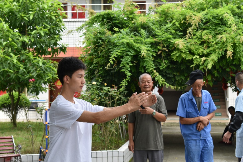 7 月 30 日的清晨,微風送來絲絲涼爽。團隊成員們再次來到敬老院,這次他們帶來的是古老而優雅的太極。在庭院中,成員們一招一式地示范,老人們認真地模仿。太極的柔和與寧靜,仿佛讓時間都慢了下來,老人們沉浸在這獨特的運動中,感受著身心的放松與寧靜。